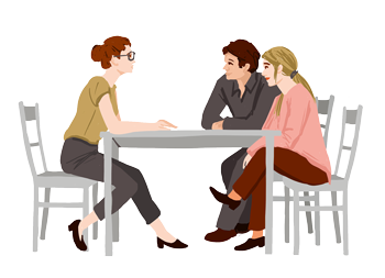 Herr Wallner eröffnet das Gespräch und erzählt zunächst vom Alltag mit den beiden Kitakindern und der Arbeit. Immer wieder sucht er Blickkontakt zu seiner Frau und bindet sie in das Gespräch ein. Ich lenke das Gespräch behutsam, aber gezielt auf die beiden Fehlgeburten und die Trauer über den Verlust. Gemeinsam blicken wir darauf, wie Herr und Frau Wallner aktuell ihren Alltag und ihre Arbeit gestalten und ob ihre Trauer einen Platz darin hat. Es zeigt sich, dass Trauer, Selbstzweifel und unausgesprochene Ängste im Alltag des Paares einen prägenden, bislang jedoch wenig aufgearbeiteten Raum einnehmen. Ich ermutige die beiden, sich Zeit für sich allein und für sich als Paar zu nehmen, und bestärke sie darin, ihrer Trauer Raum zu geben sowie gemeinsame Rituale zu entwickeln.
